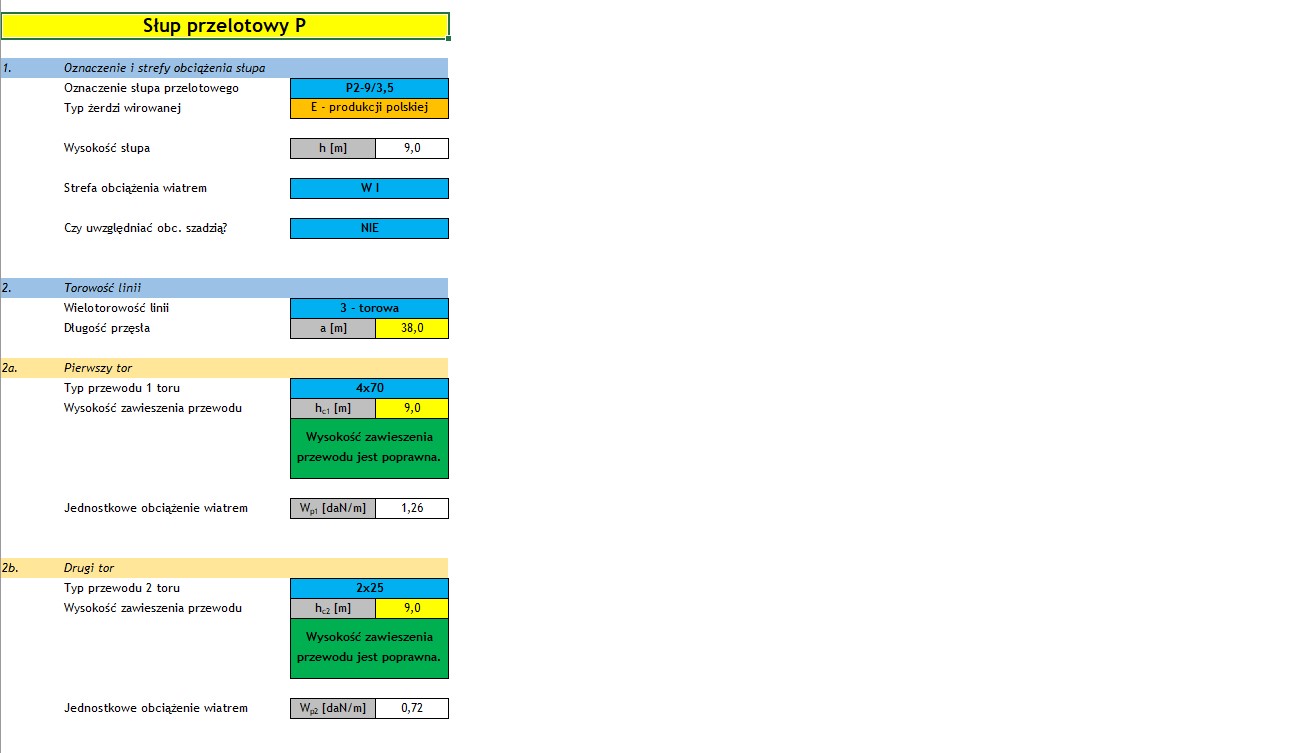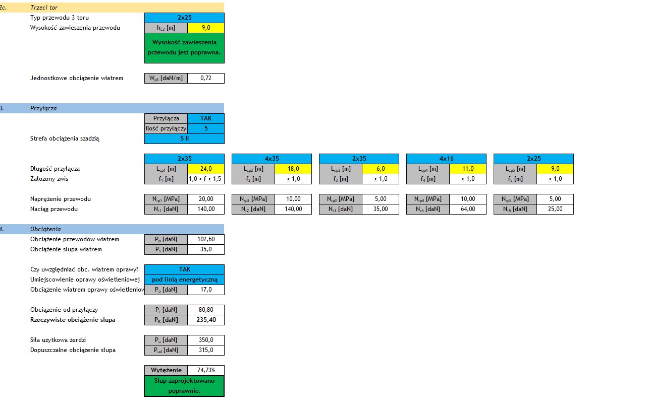 - analizę obciążeń działających na słup od przewodów izolowanych oraz warunków eksploatacyjnych